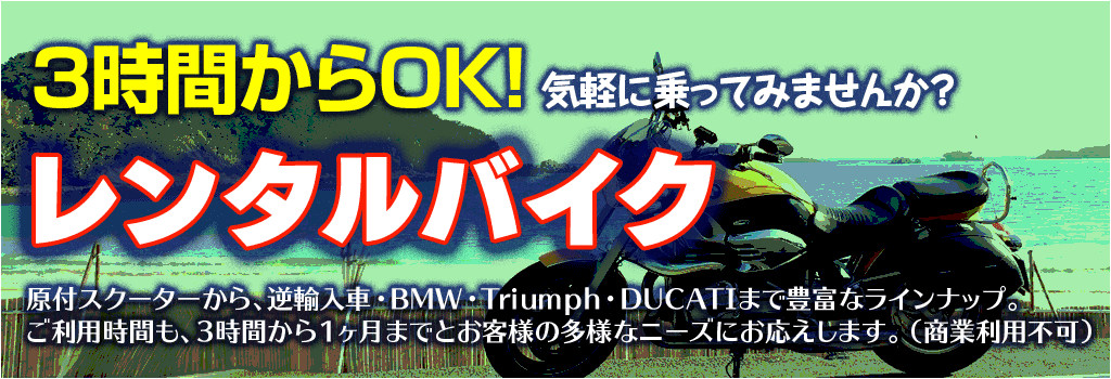 | ~50cc | ~125cc | ~250cc | ~400cc | 1000cc未満 | over1000cc | 外車・特殊車 | |