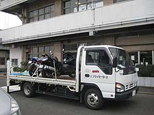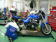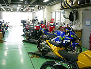 大型オートバイの点検整備の為、西東京地区最大規模のサービス工場が稼動。
