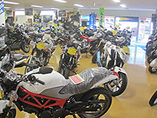 当店は、1960年創業の東京多摩地区にて6店舗を数えるアライモータースグループの中型・大型車専門店です。地域最大級の店内に国内4メーカーフルモデル・フルラインアップ、逆輸入車とDUCATIを展示しております。